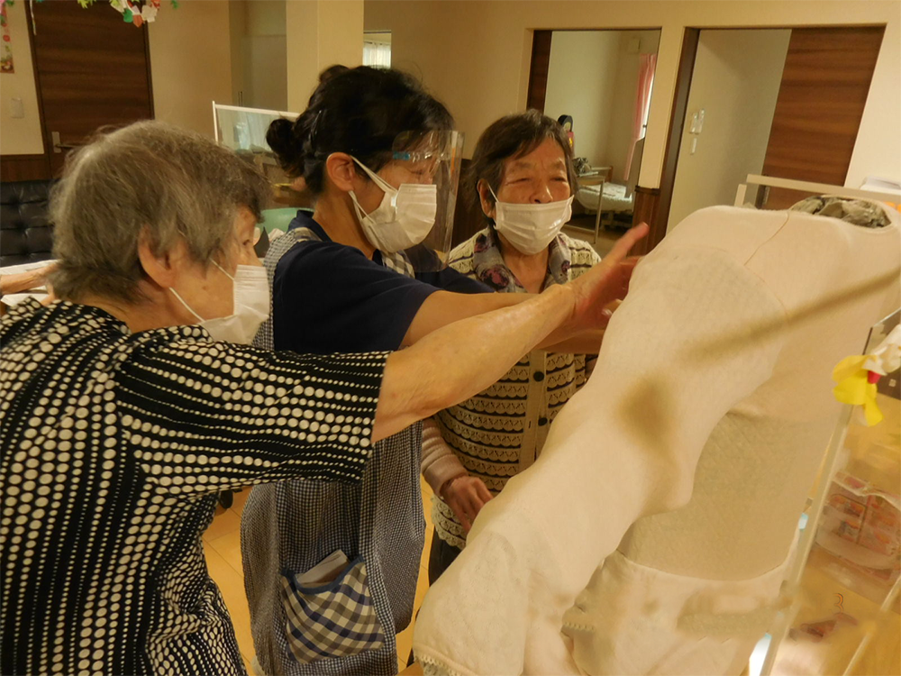 「通い(デイサービス)」を中心として、ご利用者様の様態や希望に応じ、随時「訪問(訪問介護)」や「泊まり(ショートステイ)」を組み合わせてサービスを提供することで、中重度となっても在宅での生活が継続してできるよう支援します。