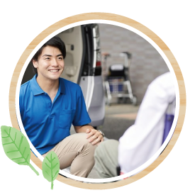 ご自宅から当施設まで送迎いたします。車いすの方のご対応も行っています。また、送迎代は定額料金に含まれています。
